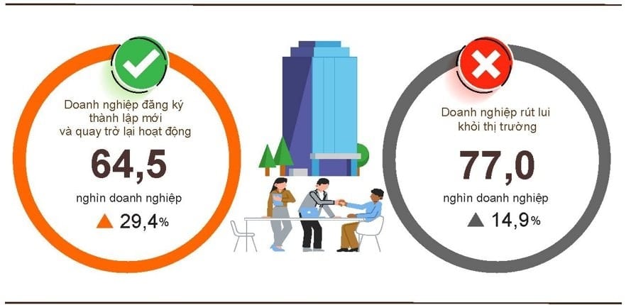 Bên cạnh đó, cả nước còn có gần 6,2 nghìn doanh nghiệp quay trở lại hoạt động, giảm 74,9% so với tháng trước và giảm 12,6% so với cùng kỳ năm 2025.