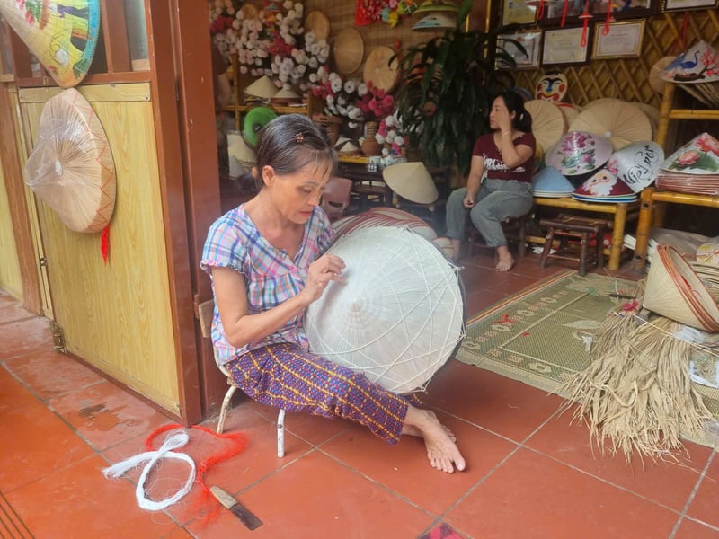 Nghệ nhân sẽ tham gia trình diễn làm nón làng Chuông tại Hội chợ Mùa Thu. Ảnh minh họa