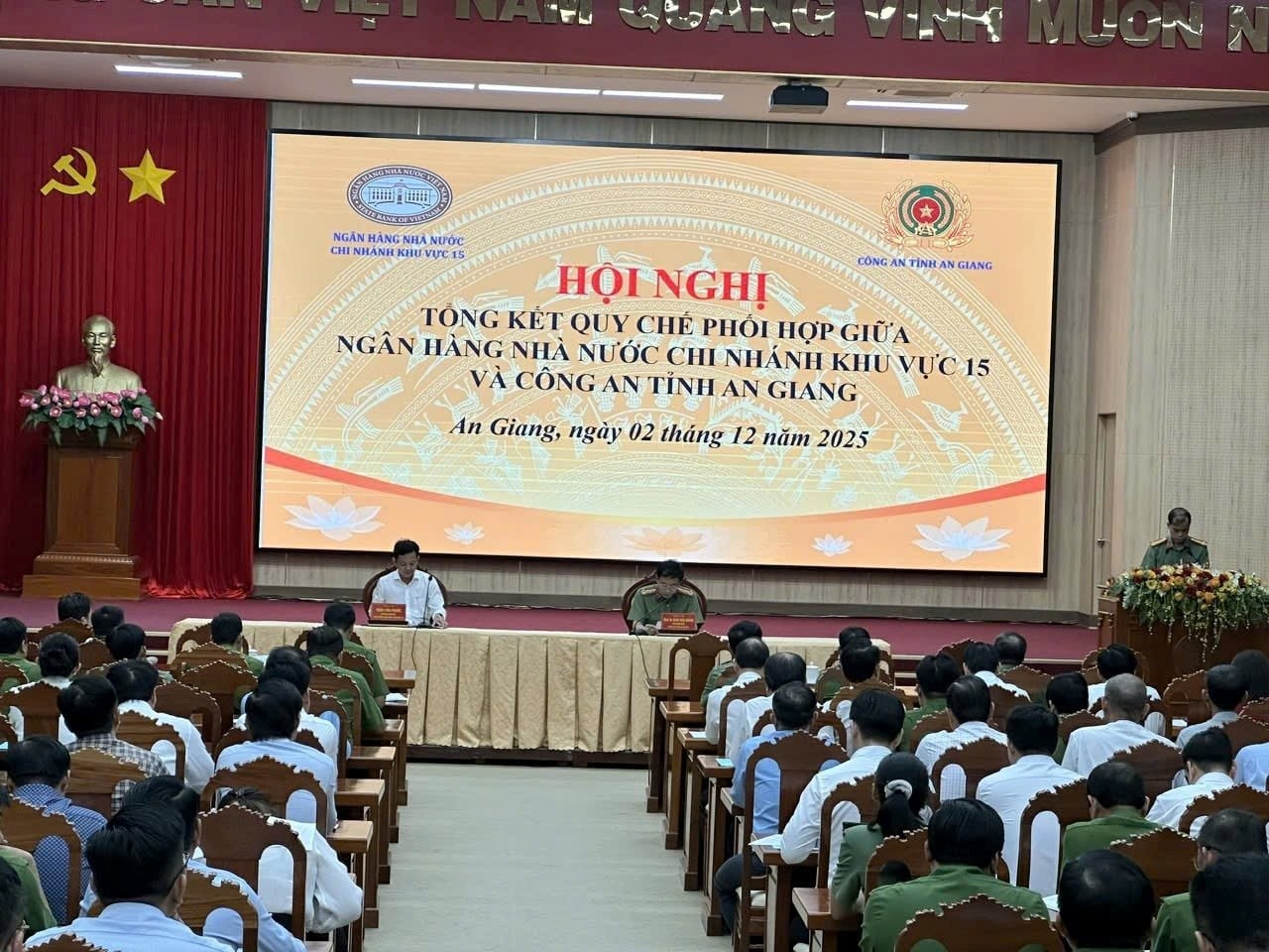 (Banker.vn) Chiều ngày 2/12, Ngân hàng Nhà nước chi nhánh Khu vực 15, Công an tỉnh An Giang phối hợp tổ chức Hội nghị tổng kết quy chế phối hợp giữa hai đơn vị. Tại hội nghị, hai bên tiếp tục ký kết Kế hoạch phối hợp trong công tác bảo đảm an ninh, trật tự và lĩnh vực tiền tệ, ngân hàng trên địa bàn Khu vực 15.