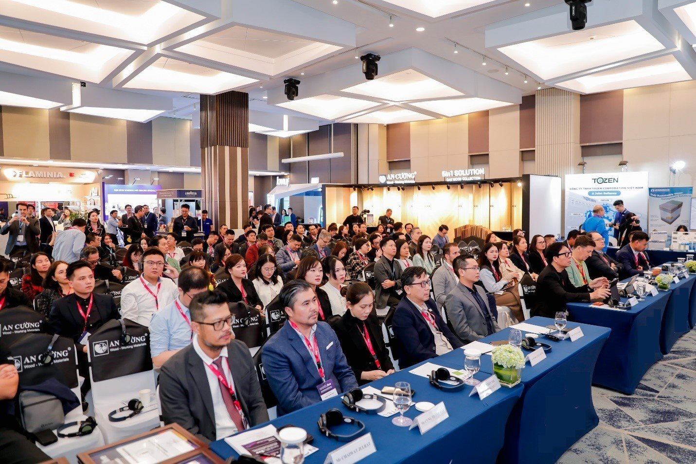 Khu vực triển lãm thu hút sự chú ý lớn với nhiều sản phẩm và giải pháp mới như vật liệu hoàn thiện, sơn phủ, thiết bị vệ sinh, kính hiệu suất cao, hệ thống xử lý nước và giải pháp thi công... Song song đó, các hoạt động giao lưu, networking và bốc thăm may mắn đã góp phần tạo nên không khí kết nối sôi nổi xuyên suốt sự kiện.