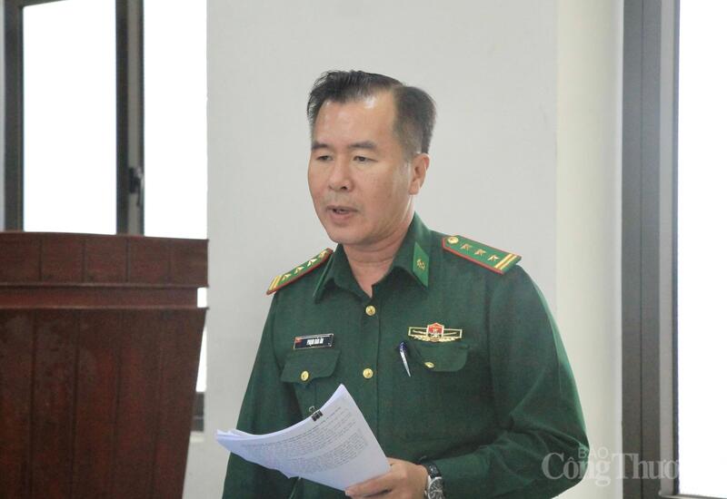 Đại diện Đồn biên phòng Cửa khẩu Cảng Quy Nhơn báo cáo tại buổi làm việc. Ảnh: Hiền Mai