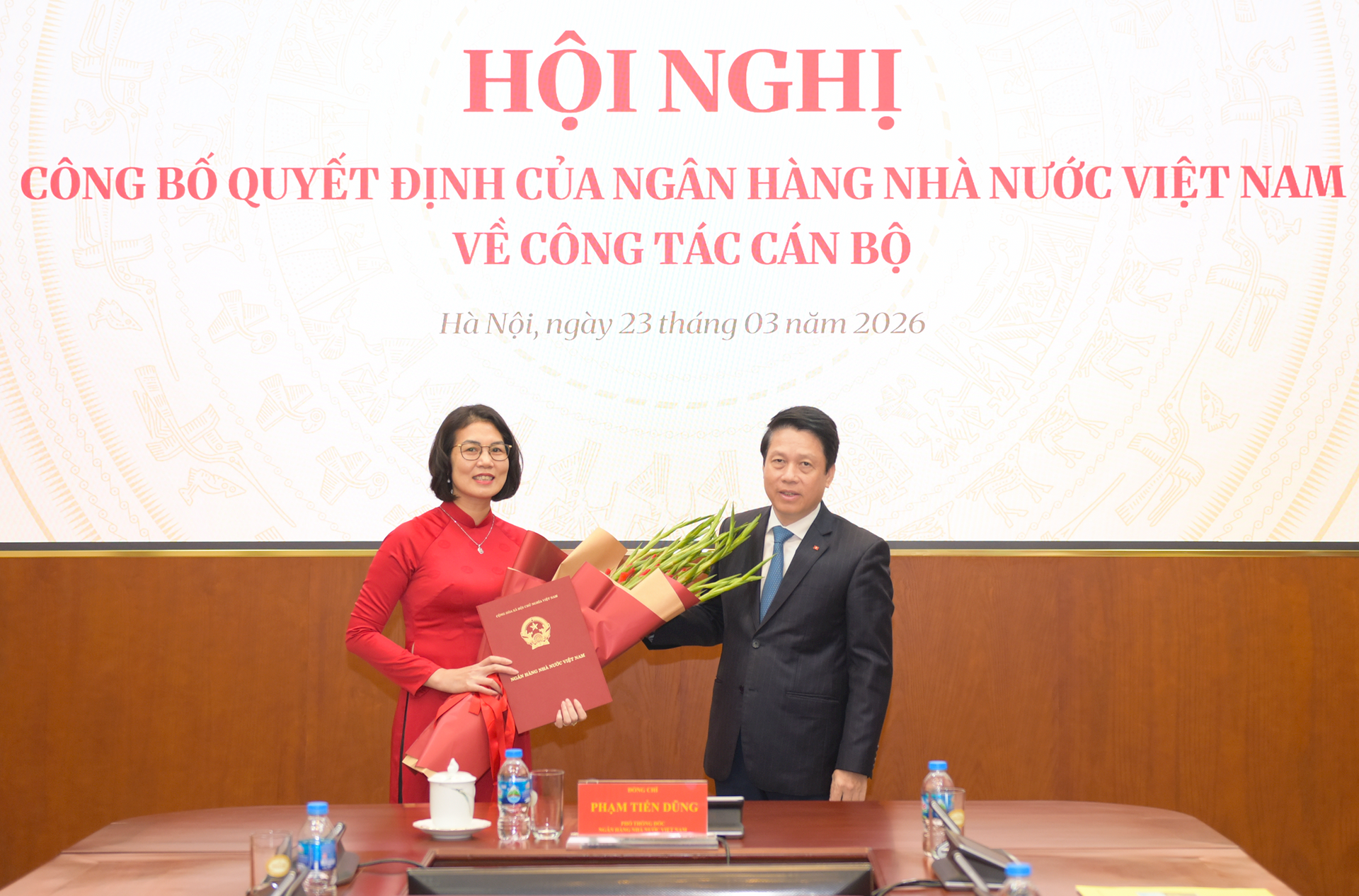 Tại Hội nghị, ông Lê Việt Hùng, Phó Vụ trưởng Vụ Tổ chức cán bộ Ngân hàng Nhà nước đã công bố Quyết định của Thống đốc Ngân hàng Nhà nước về việc bổ nhiệm bà Đỗ Thị Thu Hương, Trưởng phòng Phòng Quản lý doanh nghiệp và đơn vị sự nghiệp, Vụ Tài chính – Kế toán giữ chức vụ Phó Vụ trưởng Vụ Tài chính – Kế toán kể từ ngày 19/3/2026.