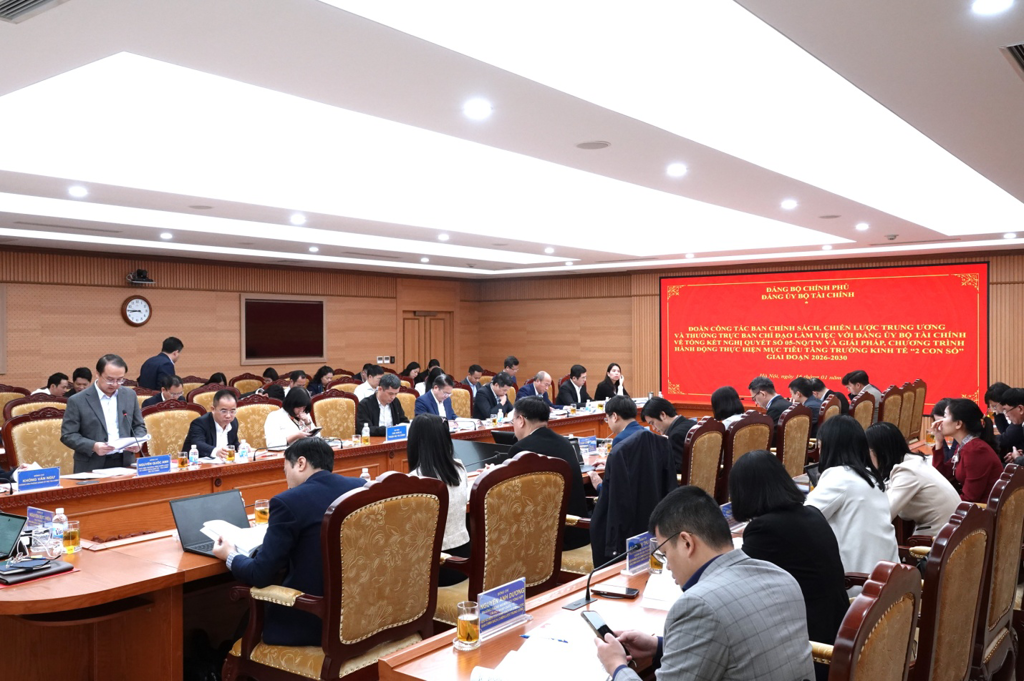 Phát biểu khai mạc, Thứ trưởng Đỗ Thành Trung cho biết, Bộ Tài chính đã tích cực phối hợp với Ban Chính sách, chiến lược Trung ương xây dựng Đề án “Các giải pháp chiến lược thúc đẩy tăng trưởng kinh tế “2 con số” trong kỷ nguyên mới - kỷ nguyên vươn mình của dân tộc Việt Nam” gắn với tổng kết Nghị quyết số 05-NQ/TW của Ban Chấp hành Trung ương Đảng khóa XII" (Đề án). Đề án gắn với xác lập mô hình tăng trưởng mới, đây là yêu cầu bắt buộc để đưa Việt Nam trở thành nước phát triển, thu nhập cao vào năm 2045. Để bổ sung luận cứ thực tiễn cho quá trình tổng kết và xây dựng dự thảo Nghị quyết, Đoàn công tác có kế hoạch làm việc với một số bộ, ngành Trung ương, trong đó có Bộ Tài chính.