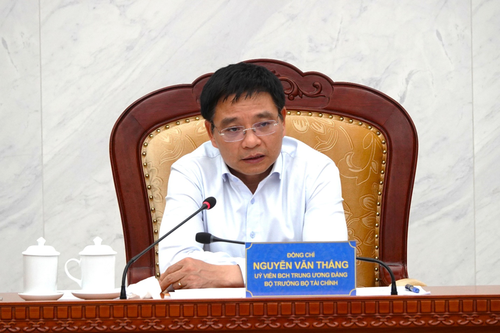 Bộ trưởng Bộ Tài chính Nguyễn Văn Thắng chủ trì buổi làm việc; tham dự có các Thứ trưởng và lãnh đạo các đơn vị trực thuộc Bộ.