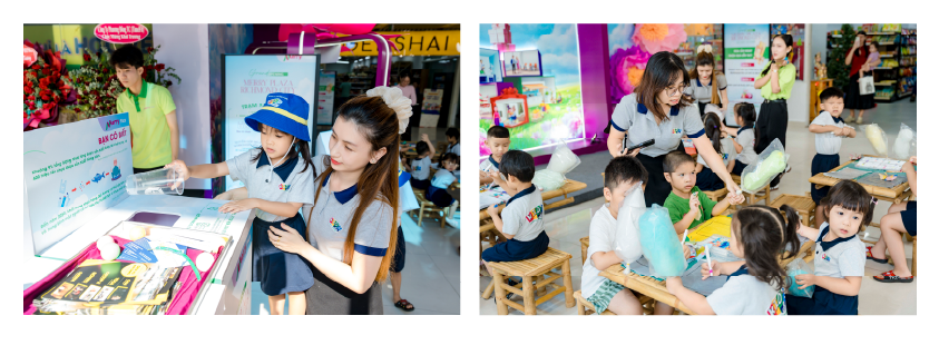 Nhiều trẻ em, học sinh được phụ huynh, thầy cô tổ chức tham quan, trải nghiệm các hoạt động workshop và nhận quà từ Merry Plaza.