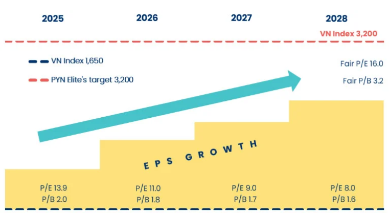 Từ những cơ sở đó, PYN Elite Fund cho rằng mốc 3.200 điểm không phải là viễn cảnh xa vời, mà là một mục tiêu có thể đạt được trong vòng khoảng ba năm tới, nếu các động lực tăng trưởng tiếp tục được duy trì và cải cách được thực thi đúng hướng.