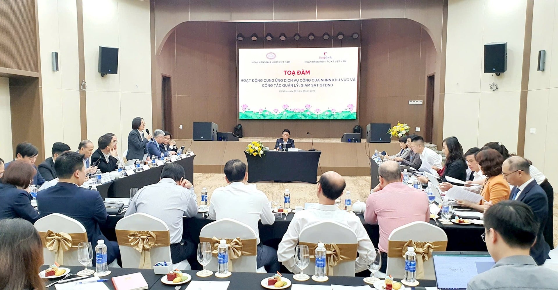 Tham dự buổi làm việc có: ông Phạm Tiến Dũng, Ủy viên Ban Thường vụ Đảng ủy, Phó Thống đốc NHNN; đại diện lãnh đạo các đơn vị vụ/cục thuộc NHNN; Giám đốc/Phó Giám đốc NHNN Chi nhánh các Khu vực; đại diện lãnh đạo Ngân hàng Hợp tác xã Việt Nam.