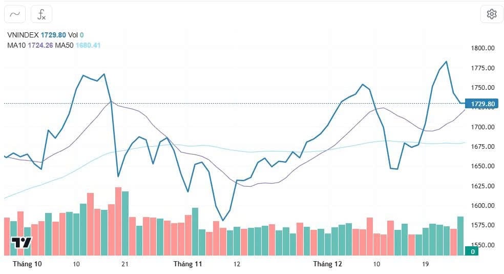 Về triển vọng ngắn và trung hạn, Chứng khoán Yuanta Việt Nam cho rằng thị trường có thể sớm quay lại đà tăng ngay từ đầu tuần, với khả năng VN-Index thử thách vùng kháng cự 1.730–1.743 điểm – khu vực khoảng trống giảm giá hình thành trong phiên 26/12.