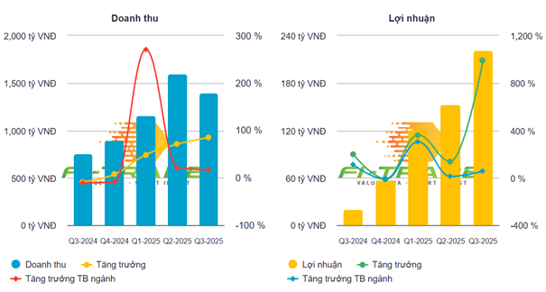 Song hành với các dự án đầu tư, hoạt động kinh doanh của DDV trong quý III/2025 tiếp tục ghi nhận những con số tích cực. Doanh thu quý đạt 1.403 tỷ đồng, tăng 84% so với cùng kỳ, còn lợi nhuận sau thuế tăng gấp hơn 10 lần, lên 221 tỷ đồng. Hai sản phẩm chủ lực là phân DAP và NH3 đều có sự bứt phá mạnh: doanh thu DAP đạt gần 1.000 tỷ đồng, tăng gần 40%; trong khi NH3 ghi nhận mức tăng đột biến 21 lần, lên 406 tỷ đồng.