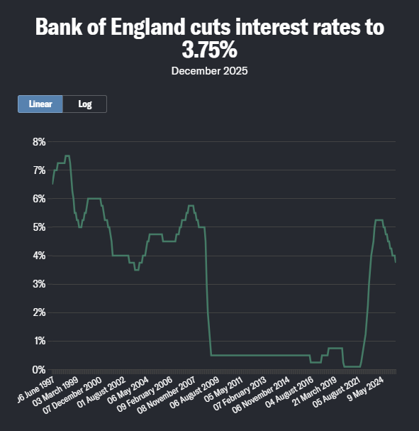 Ngân hàng Trung ương Anh (BoE) đã cắt giảm lãi suất từ 4% xuống 3,75% trong quyết định chính sách cuối cùng của năm 2025, đưa chi phí vay xuống mức thấp nhất trong gần 3 năm qua nhưng lại cho thấy sự chia rẽ sâu sắc giữa các nhà hoạch định chính sách về triển vọng nới lỏng hơn nữa.