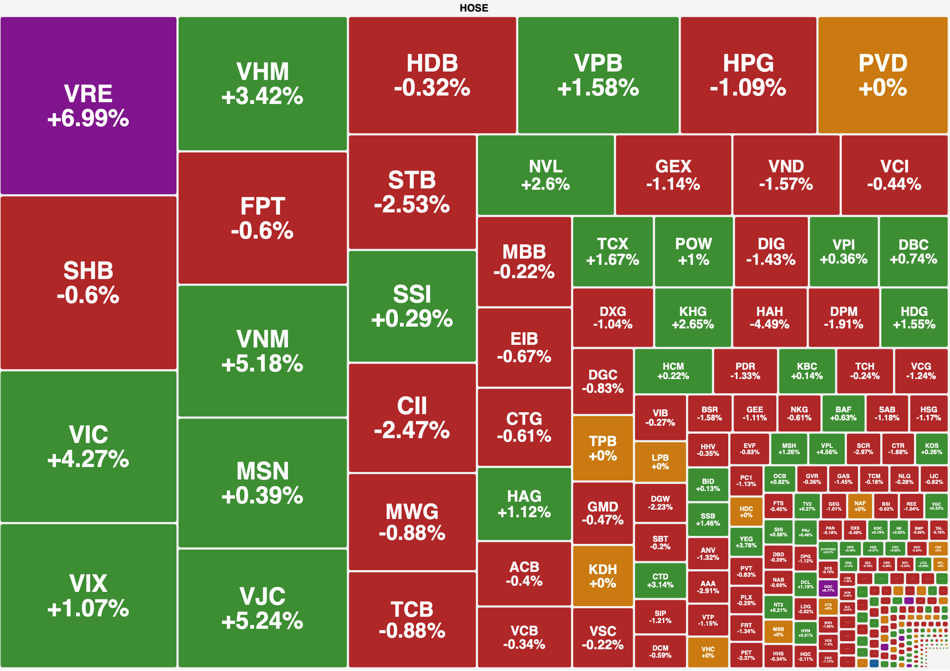 Điểm sáng giúp nâng đỡ thị trường đến từ nhóm cổ phiếu "họ" Vingroup, cùng các mã vốn hóa lớn như VNM, VJC và LPB. Dù vậy, tâm lý thận trọng bao trùm khiến thanh khoản sụt giảm đáng kể (giảm gần 31% so với phiên trước) và thấp hơn trung bình 20 phiên.