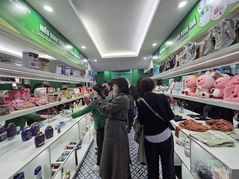 Tại các khu trưng bày, cán bộ Quản lý thị trường trực tiếp hướng dẫn người dân cách nhận biết hàng giả thông qua tem, nhãn, mã QR, công nghệ truy xuất nguồn gốc và những dấu hiệu đặc trưng của từng nhóm sản phẩm.