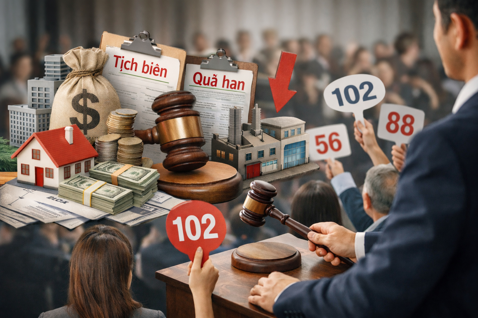 (Banker.vn) Càng gần Tết Nguyên đán, ngân hàng đẩy mạnh xử lý nợ xấu khi nhiều doanh nghiệp khó xoay dòng tiền, buộc phải bán đấu giá nợ và tài sản bảo đảm để thu hồi vốn.