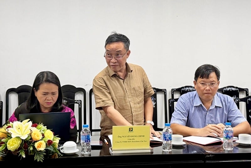 Ông Nguyễn Đăng Chinh, Giám đốc Petrolimex Cần Thơ báo cáo tại buổi làm việc. Ảnh: Nam Hương