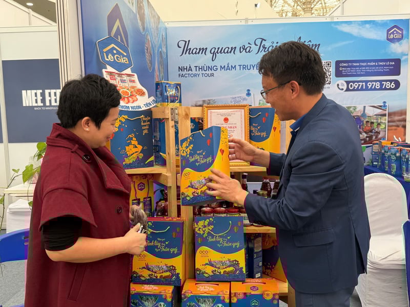 Cụ thể, những sản phẩm tôi mang đến hội chợ là sản phẩm nước mắm và mắm tôm Lê Gia. Thông qua những sản phẩm này, chúng tôi tự tin và tự hào giới thiệu với khách hàng trong và ngoài nước, đặc biệt là khách hàng quốc tế về một giá trị biểu trưng của Lê Gia nói riêng và người Việt nói chung. Sản phẩm nước mắm OCOP 5 sao cấp quốc gia của Lê Gia với đặc trưng hương vị truyền thống, sản phẩm được ví như linh hồn trong nghệ thuật ẩm thực người Việt.