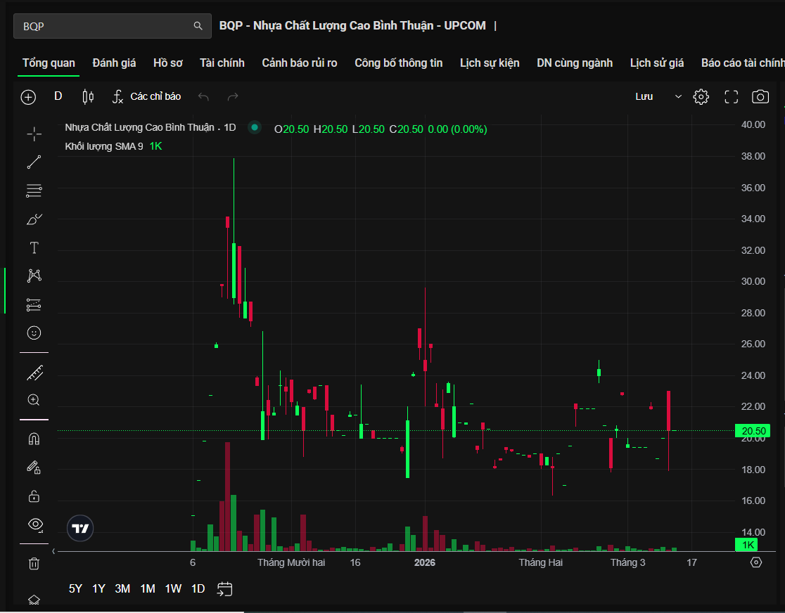 Ngay sau khi lên sàn, cổ phiếu này nhanh chóng thu hút sự chú ý khi tăng trần 7 phiên liên tiếp, đưa thị giá tăng gấp ba lần so với mức tham chiếu ban đầu. Diễn biến này khiến BQP trở thành một trong những mã cổ phiếu mới niêm yết gây nhiều chú ý trên UPCoM trong giai đoạn cuối năm 2025.
