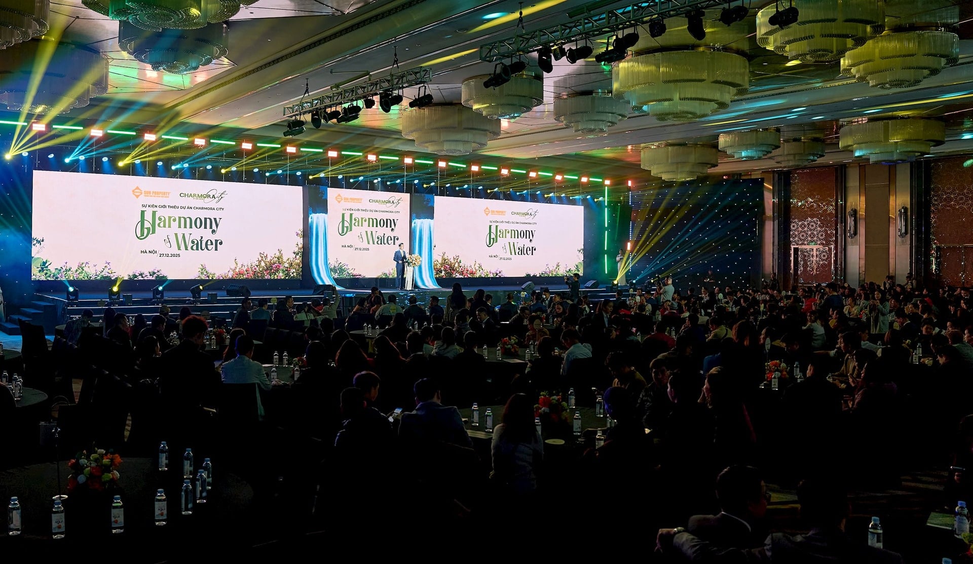margin: 15px auto;" />Sau dấu ấn mạnh mẽ tại Nha Trang ngày 14/12 quy tụ gần 1.200 khách mời, hành trình kiến tạo đô thị Charmora City đã tiếp tục đến gần hơn với các nhà đầu tư Hà Nội. Qua chủ đề "Harmony of Water - Bản giao hưởng của nước", Sun Property một lần nữa khẳng định triết lý phát triển gắn với yếu tố tự nhiên của dự án, lấy nước làm trung tâm cho toàn bộ không gian trải nghiệm và câu chuyện quy hoạch đô thị.