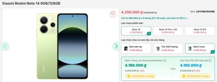 Hiện tại, Redmi Note 14 đang được bán với mức giá rất hấp dẫn: