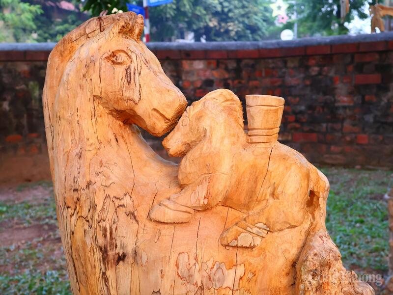 Những chú ngựa gỗ tại đây gây ấn tượng mạnh bởi vân gỗ tự nhiên, không qua sơn phết.