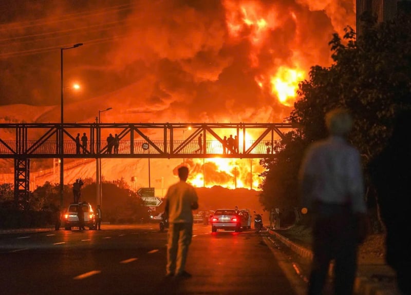 margin: 15px auto;" />Một nhà máy lọc dầu của Iran bốc cháy sau các cuộc tấn công. Nguồn: UPI