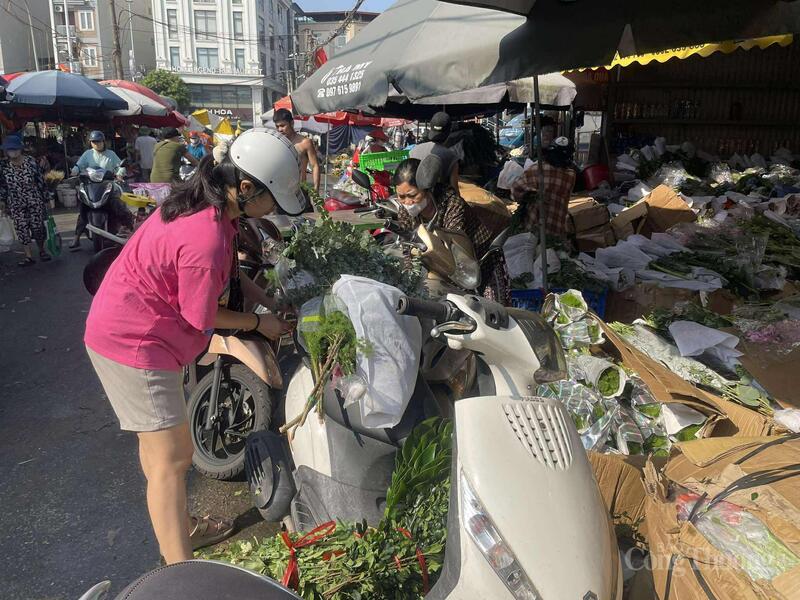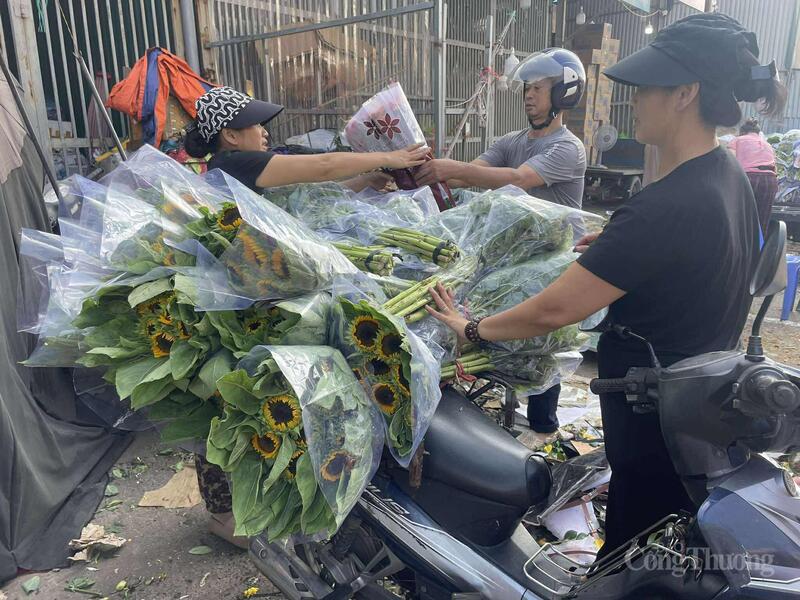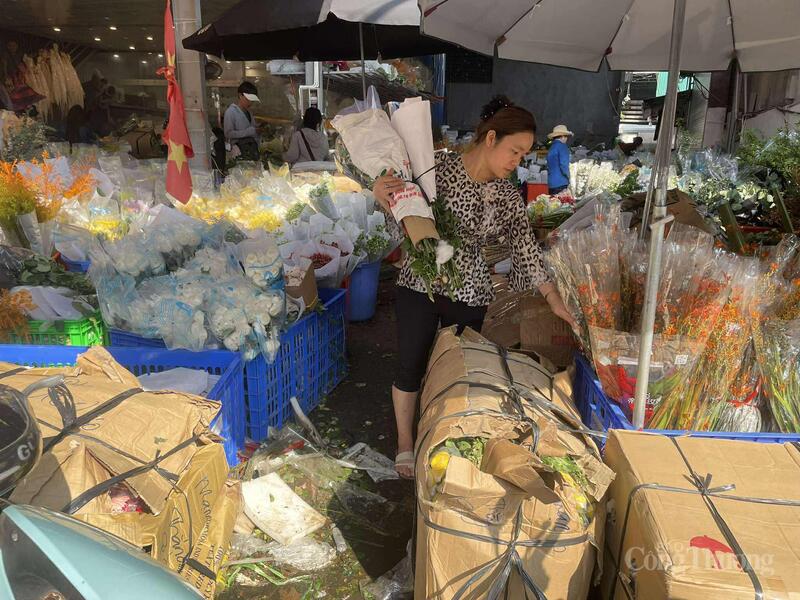 Chị Đặng Thị Lan Anh, một tiểu thương tại chợ, chia sẻ: “Giá hoa năm nay có nhỉnh một chút do cơn bão số 10 và 11 vừa qua khiến nhiều vùng trồng hoa ở Hà Nội như Tây Tựu và Đông Anh ngập nặng, hoa hư hỏng vô số… Để đáp ứng như cầu của khách mua buôn tôi phải nhập thêm hoa từ Lâm Đồng.