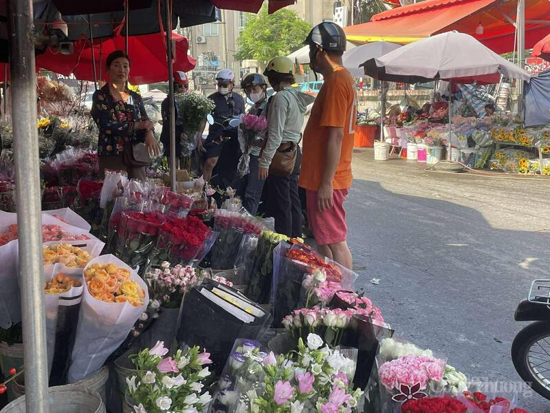 Từ sáng sớm, không khí mua bán tại chợ hoa Quảng An (phường Hồng Hà, Hà Nội) đã nhộn nhịp, tiếng gọi nhau í ới của tiểu thương xen lẫn mùi hương hoa ngào ngạt tạo nên một khung cảnh đặc trưng trước ngày 20/10.