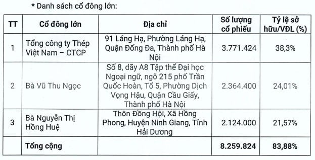 Khi đặt cấu trúc mới này trong bức tranh tổng thể, có thể thấy mức độ tập trung sở hữu tại KMT đang ở mức rất cao. Theo báo cáo thường niên 2025, ba cổ đông lớn gồm Tổng công ty Thép Việt Nam – CTCP nắm 38,30% vốn, bà Phạm Huỳnh Thảo Trân nắm 24,82% và bà Nguyễn Quỳnh Hoa nắm 24,62%, tổng cộng kiểm soát tới 87,74% vốn điều lệ.