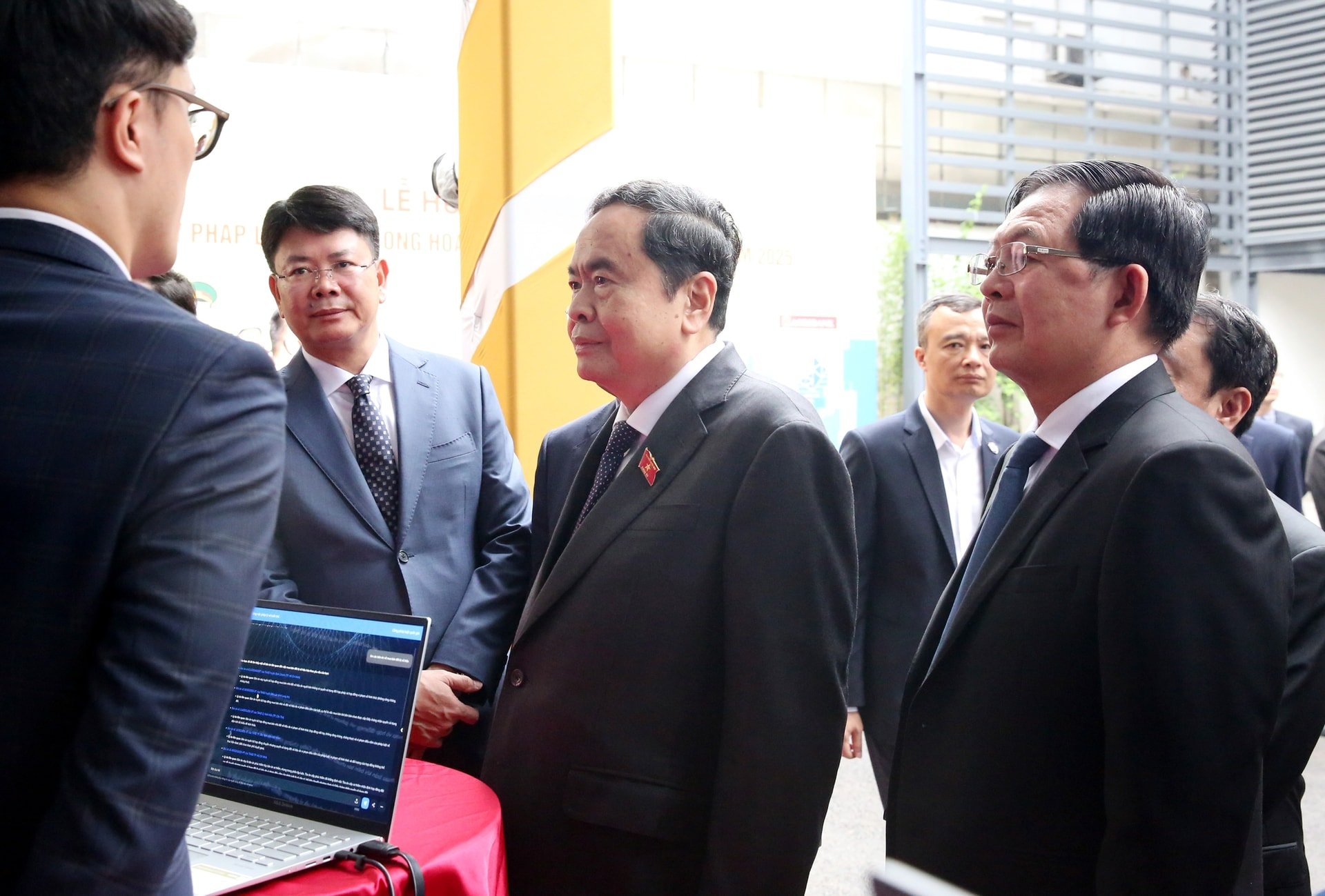 <#div>Chủ tịch Quốc hội Trần Thanh Mẫn, Phó Thủ tướng Hồ Quốc Dũng trải nghiệm ứng dụng Cổng Pháp luật quốc gia - Ảnh: VGP<#span><#figcaption><#figure>Chiều 7#11, Hội đồng Phối hợp phổ biến, giáo dục pháp luật Trung ương tổ chức Lễ hưởng ứng Ngày Pháp luật Việt Nam năm 2025.<#p>