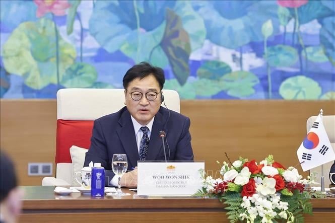 Chủ tịch Quốc hội Woo Won Shik bày tỏ vui mừng được trở lại thăm Việt Nam; chân thành cảm ơn Chủ tịch Quốc hội Trần Thanh Mẫn, lãnh đạo và nhân dân Việt Nam đã dành cho Đoàn đại biểu Quốc hội Hàn Quốc sự đón tiếp trọng thị, thân tình và chu đáo. Chúc mừng những thành tựu to lớn mà Việt Nam đã đạt được trong công cuộc xây dựng và phát triển đất nước, Chủ tịch Quốc hội Hàn Quốc tin tưởng dưới sự lãnh đạo sáng suốt của các lãnh đạo, Việt Nam sẽ tiếp tục phát triển mạnh mẽ, nâng cao vị thế và đạt được nhiều thành tựu quan trọng. Chủ tịch Quốc hội Woo Won Shik nhấn mạnh Hàn Quốc tiếp tục duy trì vị trí thứ nhất về đầu tư trực tiếp, thứ ba về thương mại của Việt Nam và hai bên đã đạt mốc 5 triệu lượt người thăm nhau trong năm 2024; cho rằng hai bên có nhiều điểm tương đồng về văn hóa, đã trở thành đối tác kinh tế hàng đầu của nhau và có mối quan hệ không thể tách rời.<#p>