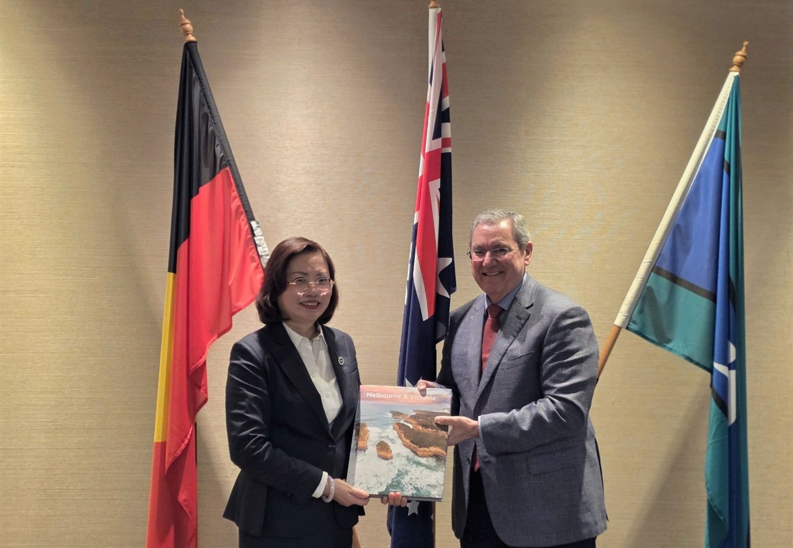 Sáng ngày 11/11/2025 tại Melbourne (Úc), Chủ tịch Ủy ban Chứng khoán Nhà nước (UBCKNN) bà Vũ Thị Chân Phương đã có buổi gặp và làm việc với ông Joseph Longo, Chủ tịch Ủy ban Chứng khoán và Đầu tư Úc (ASIC). Đây là hoạt động trong khuôn khổ chuyến công tác của đoàn UBCKNN tại Úc từ ngày 10 đến 14/11/2025, nhằm tham dự Hội nghị Thường niên 2025 của ASIC với chủ đề “Australia trong một thế giới năng động”, thảo luận về tương lai của thị trường vốn, công nghệ số, cải cách thủ tục hành chính và các ưu tiên trong công tác quản lý, giám sát.