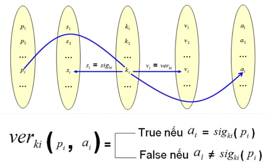- Kiểm tra/xác minh chữ ký: Với đầu vào là khóa công khai, văn bản/dữ liệu cần ký và chữ ký để cho kết quả hàm xác minh (“True” nếu đúng chữ ký và “False” nếu có lỗi).