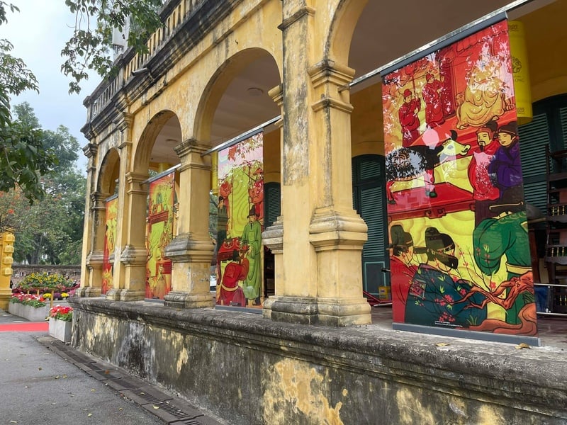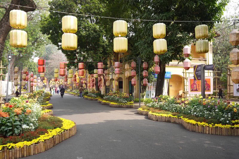 Không gian Đường hoa Tết hài hòa giữa nghệ thuật sắp đặt và giá trị kiến trúc lịch sử. Ảnh: Tường Vy