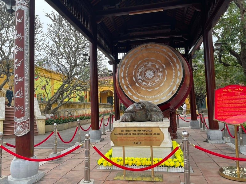 Lầu Trống với chiếc Trống đại cao 3m, đường kính mặt trống 2,35m. Ảnh: Tường Vy