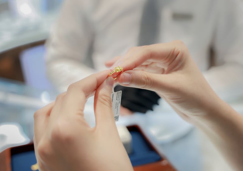 Khách hàng lựa chọn, thử các mẫu nhẫn kim tiền và trang sức phong thủy tại PNJ.