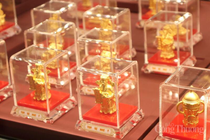 Những sản phẩm vàng hình thần Tài với kích thước nhỏ gọn, tạo hình sinh động để cầu may mắn, tài lộc trong năm mới.