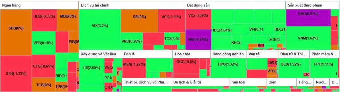 Nhóm bất động sản – xây dựng cũng xuất hiện nhiều mã tăng tốt, gồm CRE, CII, SAM, SCR, CKG hay HDG với mức tăng phổ biến từ 2%–4%, đi kèm thanh khoản khá tích cực. Ở nhóm chứng khoán, TCX tăng hơn 3% còn VIX bật 3,2%, đạt khối lượng giao dịch hơn 47,7 triệu đơn vị, đứng thứ hai toàn thị trường.