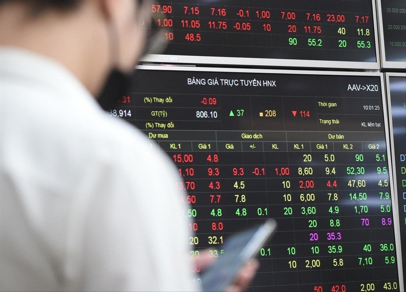 Trên sàn HNX, thị trường giao dịch phân hóa, HNX-Index giảm nhẹ 0,06% xuống 253,16 điểm. CEO tiếp tục là tâm điểm khi tăng 2,1% lên 19.500 đồng/CP, khớp 17,8 triệu đơn vị. Trong khi đó, SHS khớp 17,77 triệu cổ phiếu, giảm 1,4%; PVS giảm 1,5%, khớp 11,5 triệu đơn vị.