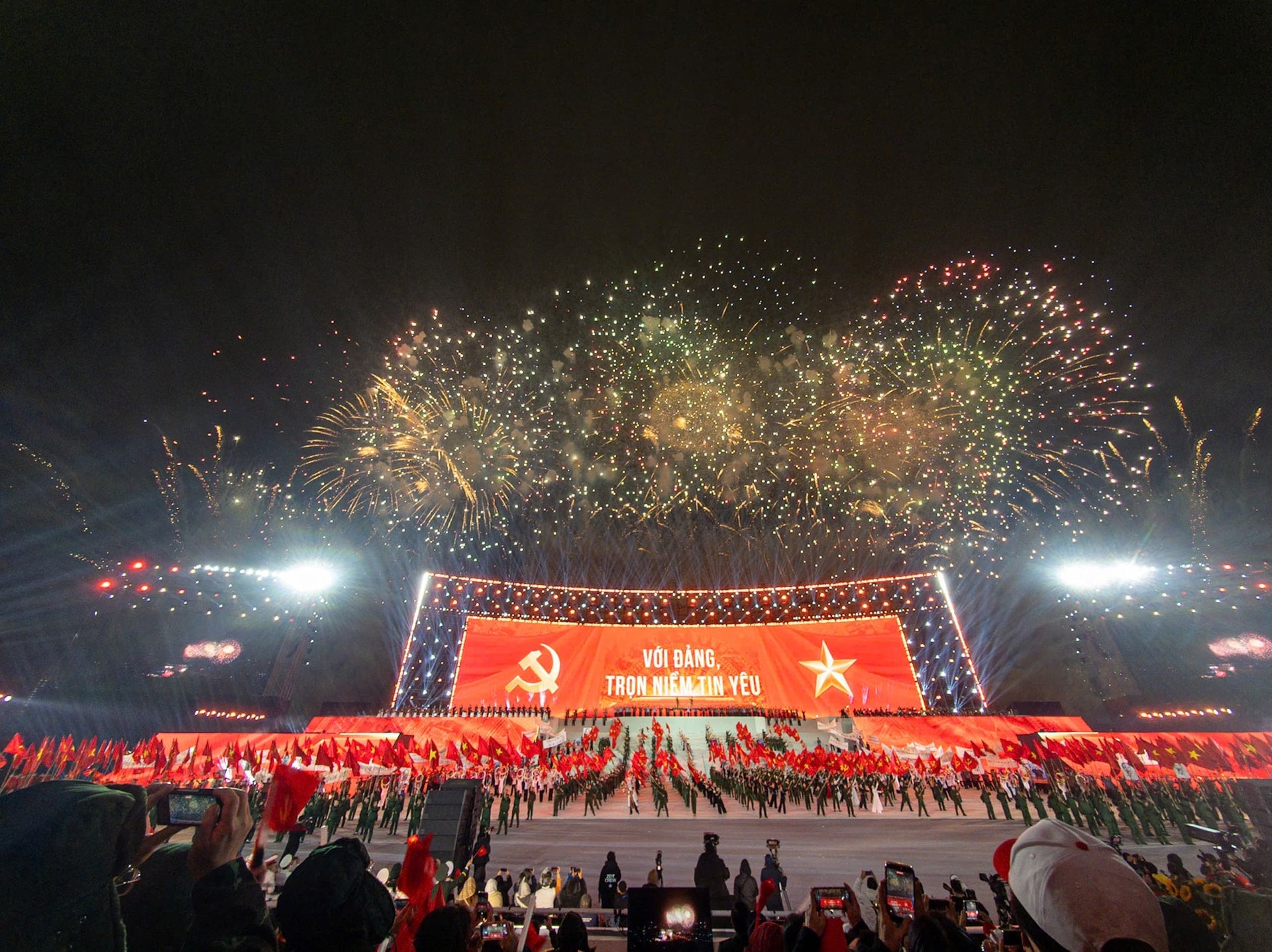 Đặc biệt, chương trình khép lại bằng màn trình diễn pháo hoa nghệ thuật đặc sắc quy mô lớn như bản hòa ca hùng tráng chào mừng thành công Đại hội đại biểu toàn quốc lần thứ XIV của Đảng, mở ra kỷ nguyên phát triển mới của đất nước Việt Nam phồn vinh, hùng cường, hạnh phúc.