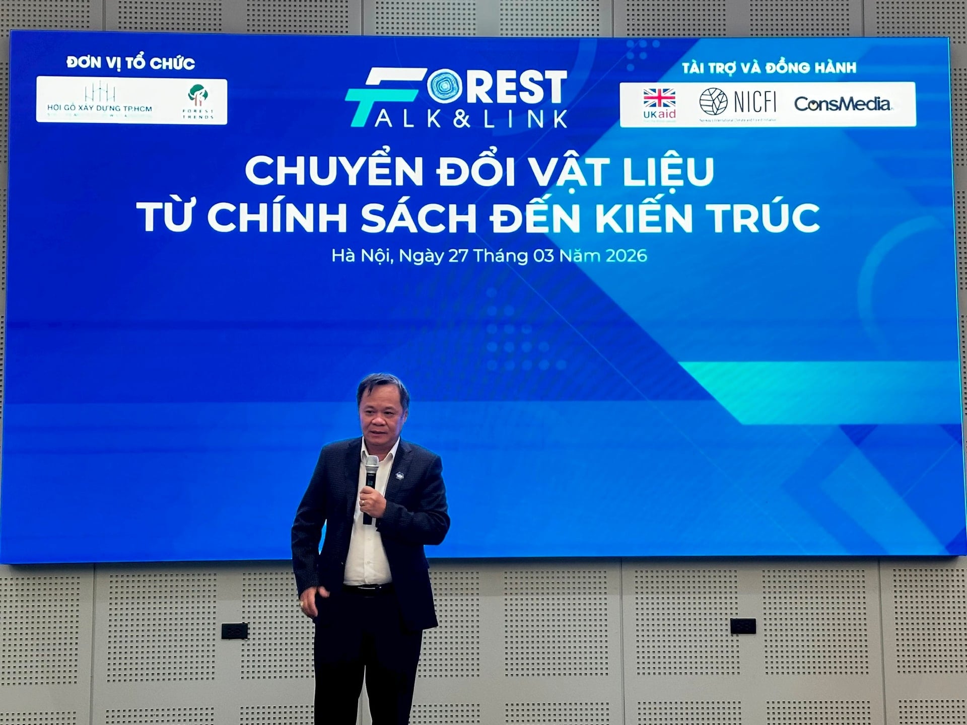 Phát biểu tại chương trình Forest Talk & Link #2 với chủ đề “Chuyển đổi vật liệu – Từ chính sách đến kiến trúc” do Hội Gỗ Xây dựng TP. Hồ Chí Minh (SAWA) tổ chức, với sự hỗ trợ kỹ thuật của Forest Trends và sự đồng hành của UKAID, NICFI và ConsMedia tổ chức sáng 27/3, ông Võ Quang Hà, Chủ tịch SAWA chia sẻ, trong những năm gần đây, ngành xây dựng đang đứng trước những áp lực ngày càng rõ rệt liên quan đến giảm phát thải, sử dụng hiệu quả tài nguyên và đáp ứng các tiêu chí phát triển bền vững. Trong bối cảnh đó, vật liệu xây dựng đang trở thành một yếu tố mang tính chiến lược, có ảnh hưởng trực tiếp đến toàn bộ vòng đời công trình.