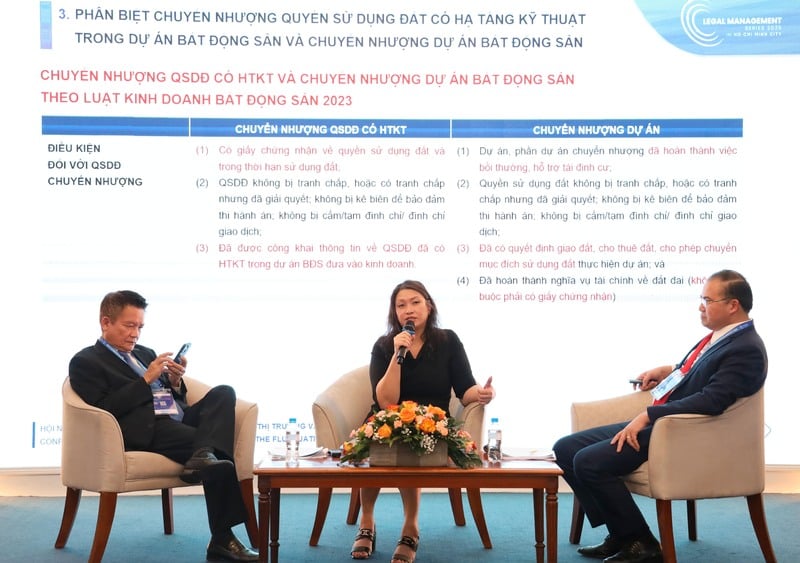 LS. Nguyễn Trúc Hiền nhấn mạnh sự khác biệt giữa chuyển nhượng quyền sử dụng đất có hạ tầng và chuyển nhượng dự án. Nếu hợp đồng không làm rõ tư cách chủ đầu tư, có thể phát sinh rủi ro pháp lý, thậm chí dẫn tới đình trệ dự án. Do đó, doanh nghiệp cần thẩm định kỹ và quy định rõ ràng trách nhiệm, quyền nghĩa vụ trong hợp đồng trước khi ký kết giao dịch.