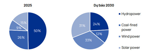 Nếu nhìn sâu hơn vào cơ cấu mảng điện, xu hướng dịch chuyển dần về phía điện gió và điện mặt trời được thể hiện rõ trong các dự báo trung hạn, trong khi thủy điện tiếp tục đóng vai trò trụ cột nền tảng.