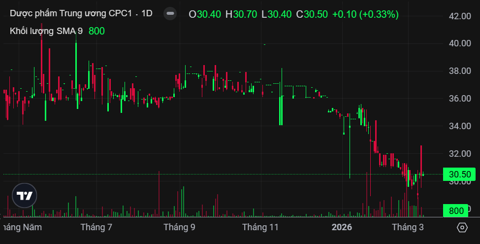 Công ty CP Dược phẩm TW CPC1 (UPCoM: DP1) chứng kiến thanh khoản giảm sốc trong thời gian gần đây. Số lượng cổ phiếu khớp lệnh mỗi phiên chỉ dao động từ vài trăm cho đến vài nghìn đơn vị. Thậm chí có những phiên không xuất hiện thanh khoản. Trong 1 năm trở lại đây, thị giá DP1 đã giảm khoảng 22%. Với việc cổ phiếu khan hiếm thanh khoản, cơ hội để DP1 quay trở lại thời đỉnh cao là rất khó.