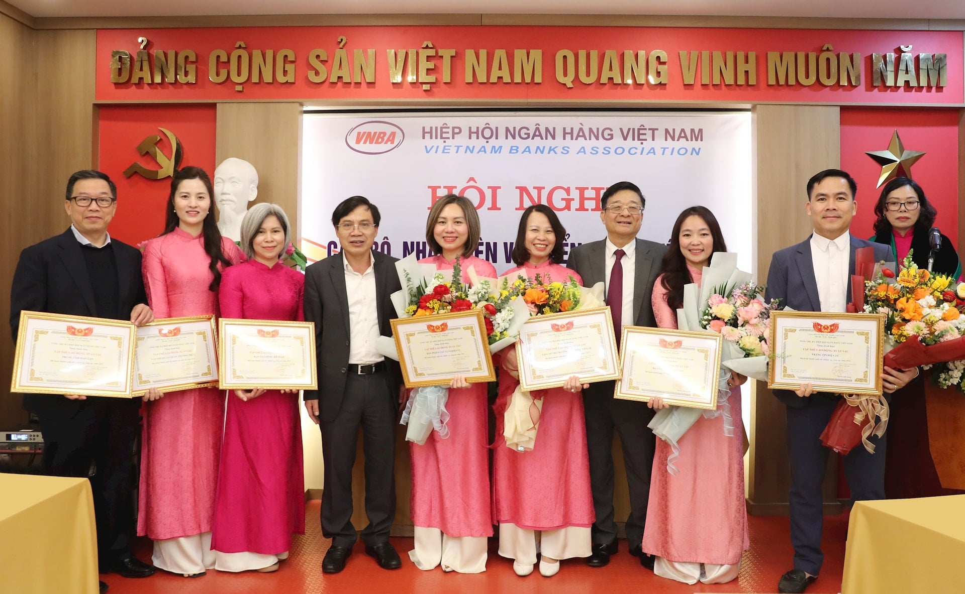 Trong khuôn khổ hội nghị, 2 tập thể và 3 cá nhân trong Cơ quan thường trực Hiệp hội Ngân hàng Việt Nam đã vinh dự nhận Bằng khen của Thống đốc Ngân hàng Nhà nước năm 2025. Cùng với đó là 7 tập thể lao động xuất sắc năm 2025 nhận Giấy khen của Tổng Thư ký.