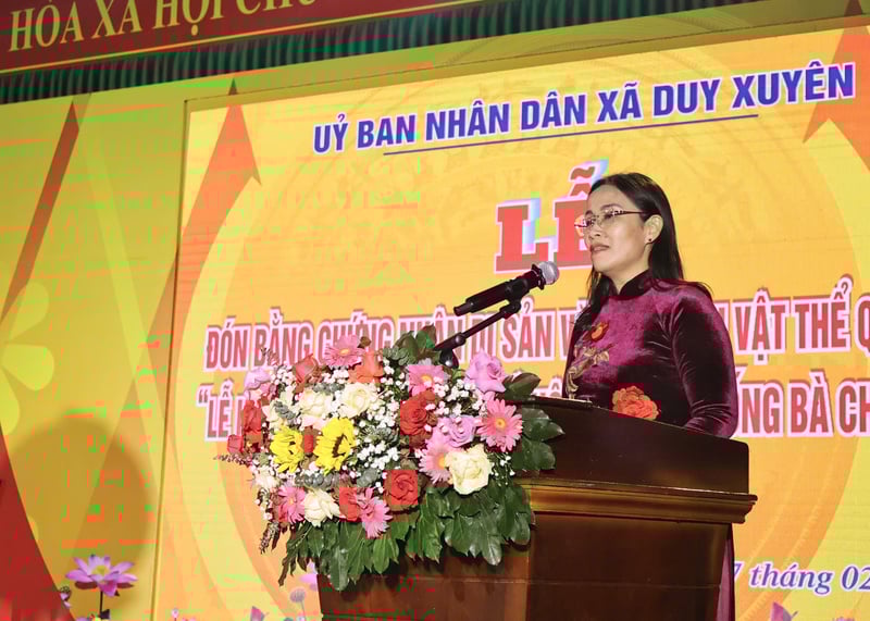Phó Chủ tịch UBND TP. Đà Nẵng Nguyễn Thị Anh Thi ghi nhận và biểu dương những nổ lực, cố gắng trong công tác bảo tồn và phát triển Lễ hội Bà Chiêm Sơn của chính quyền xã Duy Xuyên.