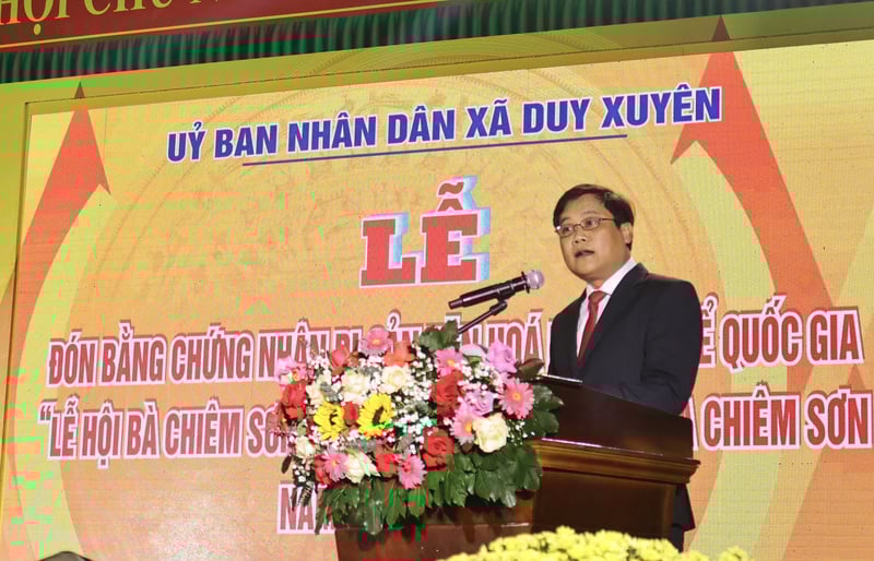 Phát biểu tại buổi lễ, ông Đặng Hữu Phúc, Chủ tịch UBND xã Duy Xuyên cho biết: “Việc đón nhận Bằng Di sản văn hóa phi vật thể cấp quốc gia chính là sự khẳng định giá trị tự thân của lễ hội, đồng thời là sự ghi nhận của Nhà nước đối với những nỗ lực bền bỉ của bà con dân làng trong việc gìn giữ bản sắc, hồn cốt dân tộc nói chung và văn hóa tín ngưỡng dân gian nói riêng”.