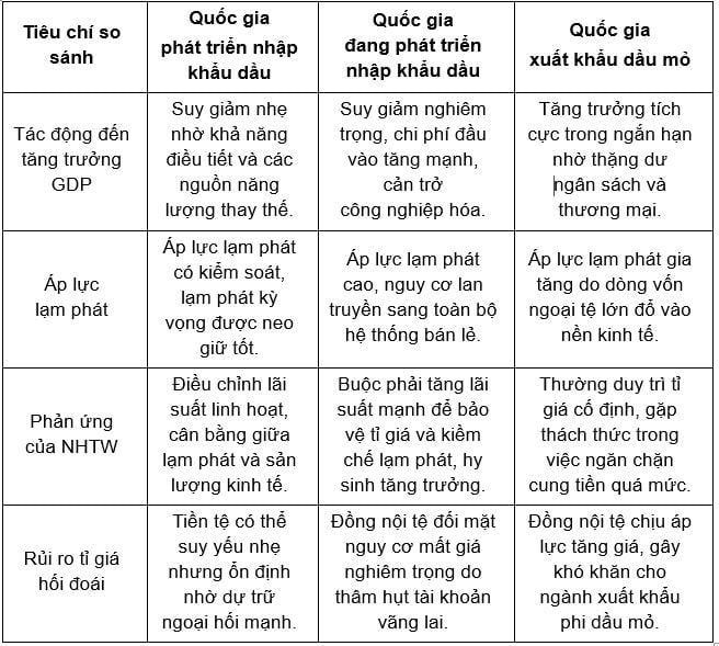 Mọi phân tích vĩ mô sẽ trở nên phiến diện nếu bỏ qua đặc thù cấu trúc nền kinh tế của từng quốc gia. Thực tiễn cho thấy cú sốc giá dầu tạo ra những tác động hoàn toàn trái ngược nhau, mang tính phi đối xứng sâu sắc giữa các nhóm quốc gia khác nhau.
