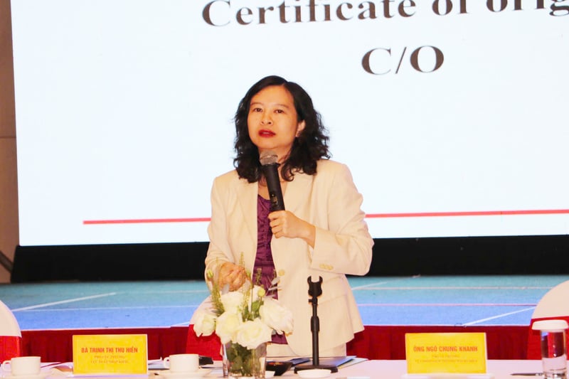 Bà Trịnh Thị Thu Hiền, Phó Cục trưởng Cục Xuất nhập khẩu (Bộ Công Thương) giải đáp các thắc mắc của doanh nghiệp xuất khẩu tại hội nghị. Ảnh: Phong Lâm