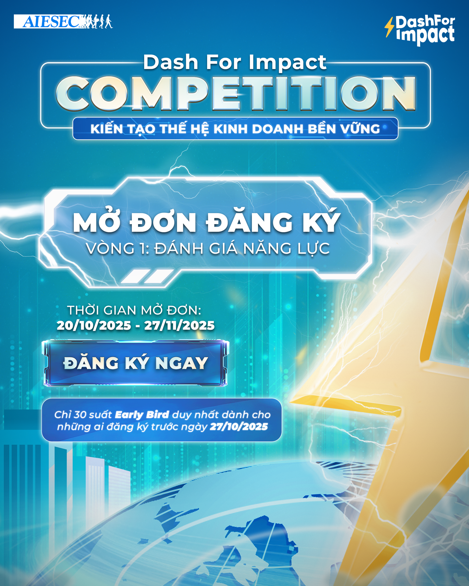 Tham gia cuộc thi, thí sinh không chỉ có cơ hội rèn luyện tư duy kinh doanh thực tế, bền vững, mà còn nhận sự hỗ trợ chuyên môn từ các cố vấn và giải thưởng giá trị từ Ban tổ chức. Hơn cả một cuộc thi, Dash For Impact 2025 là hành trình truyền cảm hứng để người trẻ tự tin trở thành thế hệ kiến tạo doanh nghiệp bền vững.