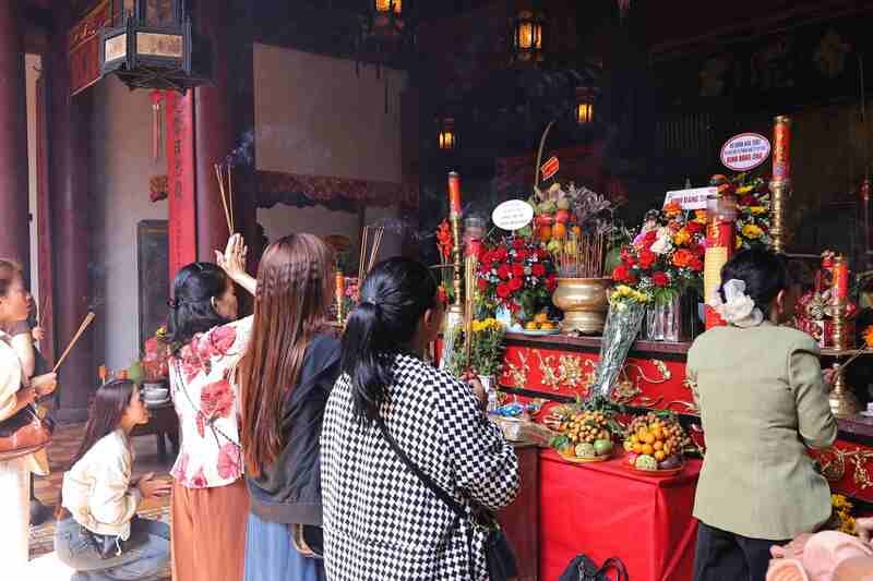 Đông đảo người dân và du khách đổ về dâng hương cầu bình an tại Chùa Ông, Chùa Bà. Ảnh: Diễm Phúc