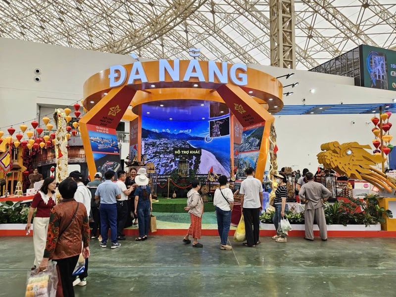 Rất đông người dân, du khách tham quan Cụm gian hàng của TP. Đà Nẵng tại Hội chợ Mùa Thu. Ảnh: Bình An
